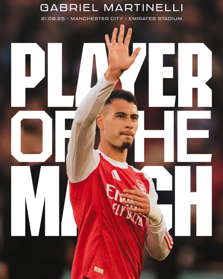 补时绝平!马丁内利当选对阵曼城一役阿森纳队内最佳球员