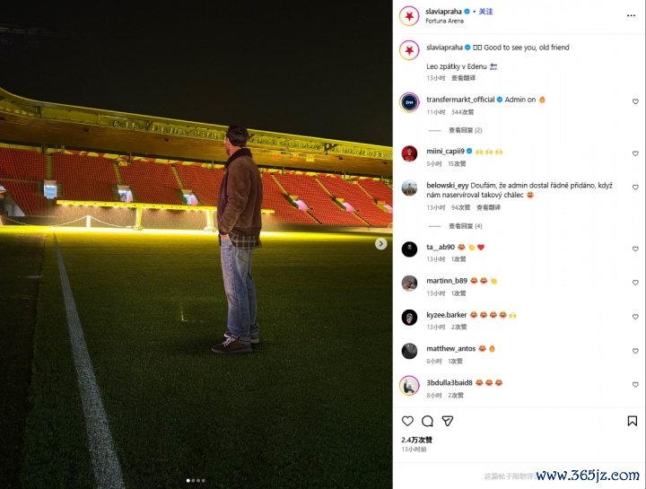 整活!捷克球队晒梅西P图:老朋友,梅西回到伊甸园运动场