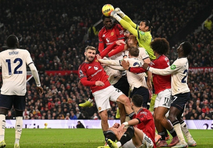 曼联1-1西汉姆联。达洛特门前补射得手,马加萨扳平比分。