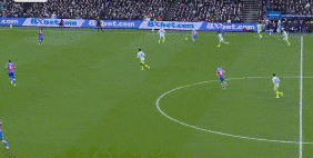 第17分钟,亚当·沃顿中圈送出过顶传送球 ,皮诺前插获得单刀赴会机会,结果他的射球 击中横梁弹出。曼城逃过一劫。