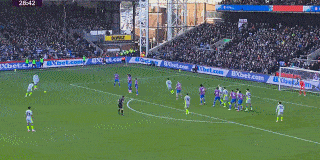 第29分钟,曼城前场定位球机会,福登主罚直接攻门,亨德森飞身将球扑出。