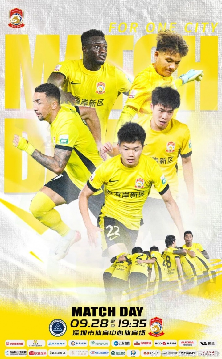 青岛西海岸后备 :26-王晗懿、37-东航、3-赵宏略、6-徐彬、13-宋浩宇、14-冯刚、19-丁海峰、21-木塔力甫、30-刘小龙、36-孙捷、39-刘柏杨、56-高迪