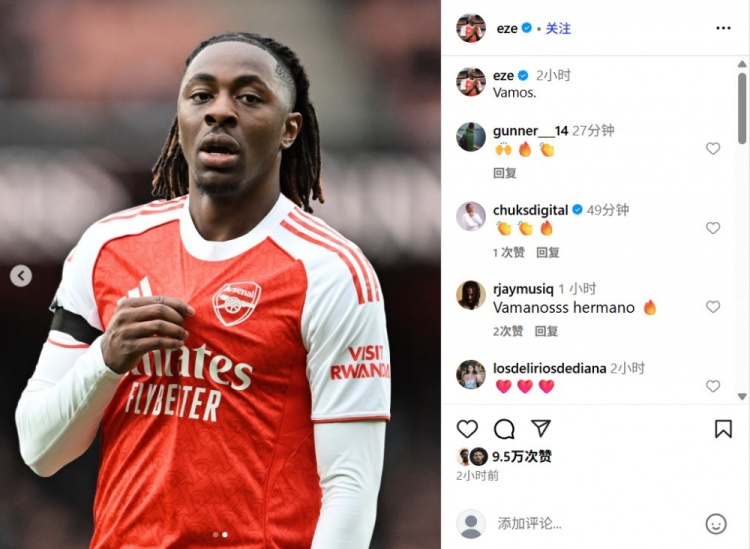 阿森纳登顶!埃泽社媒晒照庆祝获胜 :助威