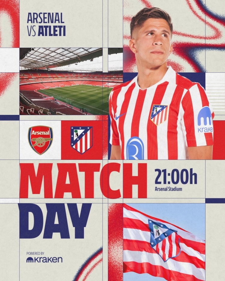 马竞晒欧冠客战阿森纳海报:朱利亚诺-西蒙尼单人出镜