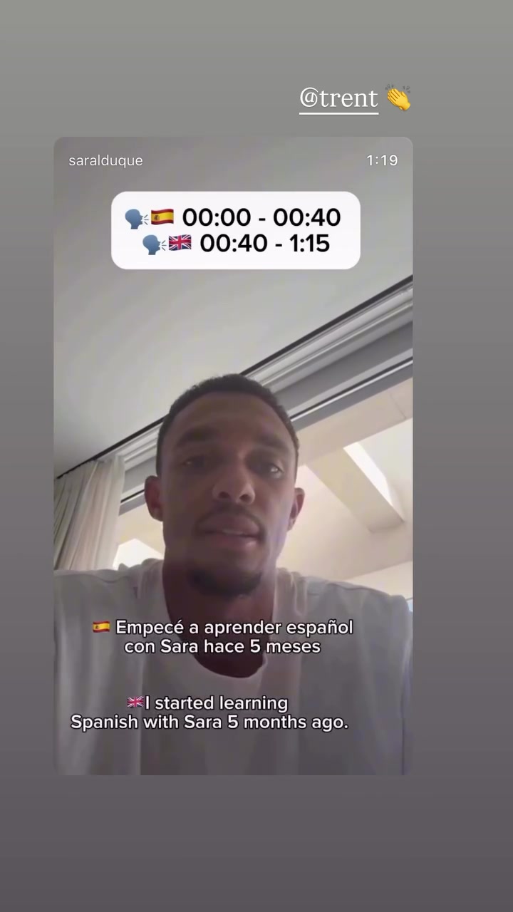 视频中,阿诺德用西语说:“你好,我是特伦特,5个月前我开始和Sara学习西班牙语。以前我从没说过西班牙语,我想更好地和队友、指导教练员、球迷沟通,更好地适应俱乐部和西班牙生活,所以才学习西班牙语。我非常喜欢这些课程,苏超直播在线观看因为这专注于古代足球 术语、发布会、采访以及与队友的沟通,我非常喜欢这些课程。”