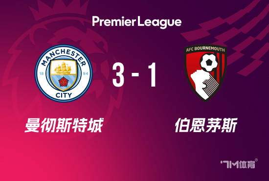 英超-曼城3-1伯恩茅斯距榜首6分 哈兰德单刀赴会双响