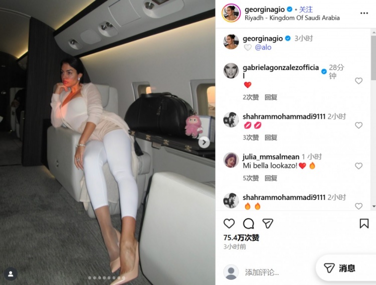 陪伴C罗!长途跋涉,乔治娜晒前往利雅得相关照片